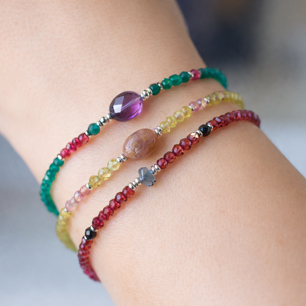- Pulsera de piedra natural y billas de plata